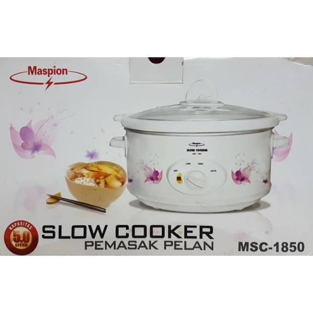 Maspion selalu memberikan yang terbaik bagi keluarga Indonesia. Hal ini terbukti dengan salah satu produk Maspion yeng memiliki daya jual tinggi, yaitu Magic Cooker. Kapasitas 5LFITURCapacity : 5 LPan : ceramic panBody : PlateWattage : 260 WVoltage : 220 VDimensi (2 pcs/ pack): 371 x 330 x 472 mmCeramic Pan.Panci terbuat dari ceramic kualitas terbaik. Kelebihan panci keramik adalah mampu menjaga hangatnya makanan lebih lama dan makanan yang dihasilkan lebih higienis. Selain itu, setelah penggunaan, slow cooker ini lebih mudah dibersi