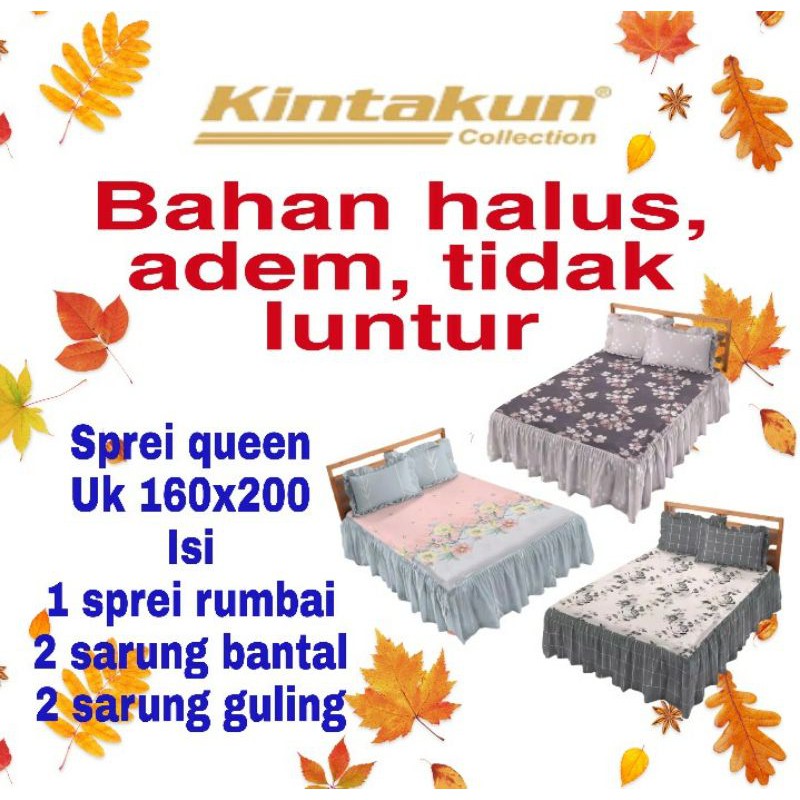 Sprei kintakun dluxe rumbai queen no 2 uk 160x200Sprei Kintakun dluxe Rumbai queenUkuran 160x200Bahan Microtex DisperseIsi1 sprei Ukuran 160x2002 sarung bantal2 sarung gulingBUNGKUS PLASTIK BIASA (KARNA DI AMBIL DARI BEDCOVER SET)Bahan halus, tidak luntur, tidak berbulu, tidak berpasir, ademCantukan 3-4 motif cadangan untuk mempercepat proses pesananNB : gambar hanya sebagai ilustrasi, barang dikirim sesuai dengan yang diproduksi pabrikKAMI USAHAKAN KIRIM SESUAI PESANANAPABILA MOTIF YANG DIMINTA KOSONG AKAN KAMI KOMFIRMASI, JIKA TIDAK ADA RESPON DARI PEMBELI AKAN DIKIRIM RANDOMKondisi BarangSebelum barang dikirim kami tidak akan buka segel atau bongkar packing untuk mengecek barang satu per satu. Karena itu tanggung jawab pabrik (termasuk kelengkapan produk / isi kemasan). Penjual hanya mendistribusikan.Kecuali untuk Bedcover Set kami buka segel kemasan hanya melepas kardus tulangan untuk packing agar tidak kena bebab volume diekspedisi.ORDER=MEMBACA=SETUJU=NO KOMPLAIN=NO RETURN=NO REFUND#sprei#spreimurah#murah#kadounik#seprei#sepreimurah#seprai#sepraimurah#sprai#spraimurah#thr#kamarmurah#kamartidur#dekorasi#rumahtangga#flashsale#cucigudang#diskon#discont#sarungbantal#serbamurah#fashionsale#cod#mansale#ramadansale#kadonikahan#p