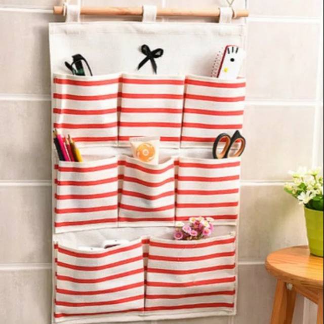 READY : -salem-navyCANTUMKAN WARNA YANG DI ORDER DI KOLOM CATATAN UNTUK PENJUAL . JIKA TIDAK, MAKA AKAN DIKIRIM WARNA RANDOM !!Pouch gantung hadir dengan sekat yang lebih banyak, terdiri dari 8 sekat. Berfungsi untuk tempat aksesoris, pernak pernik rumah dan dapur seperti kosmetik, alat rias, ikat rambut, remote, buku resep, pulpen, smartphone dan sejenisnya.Dilengkapi tali dan kayu, bisa digantung di tembok ruang tamu, kamar tidur atau di belakang pintu. Ada hiasan pita cantik di bagian atas pouch, unik loh...Dengan pouch gantung, pernak pernik kecil jadi tersimpan rapi dan mudah dicari saat dibutuhkan. Isi rumah juga jadi rapi, tidak berserakan dengan aneka pernak pernik.Kombinasi warna dan design menarik, cocok untuk menambah dekorasi rumah anda.Size : 34.5 x 49 cm#homeorganization #homeorganizerbags #homeorganizer #pouchgantungserbaguna#pouchgantung#tempatpenyimpananserba